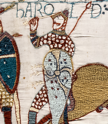 There is even doubt over whether the first figure is actually clutching an arrow! There are some who contend that the significant restorations undertaken in the 19th century may have altered the whole sense of the Tapestry. It is suggested that the figure was – in the original – in fact holding a spear ready to launch at the enemy.