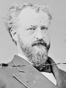 Not many people remember Roscoe Conkling these days but from the late 1860s until his resignation from the Senate in 1881 he played a major role in US politics. At six feet three inches tall and of athletic build, Conkling was said to have cast his contemporaries into the shadows with his gaudy suits and haughty manner. Adding to his physical presence was a wide, frowning forehead over which hung a thick ‘Hyperion curl’ of his flaming red hair. He was referred to as ‘My Lord Roscoe’ by his contemporaries and while they may have had their tongues in their cheeks, not many had the courage to oppose him. Often described as obnoxious, he was also a brilliant orator with a remarkable memory who was considered one of the greatest legal minds of his generation. Aside from all this, Conkling was an enthusiastic lady’s man and notorious for his extra-marital affairs, most memorably with society hostess Kate Chase Sprague, whose husband chased him out of their house at the point of a shotgun.